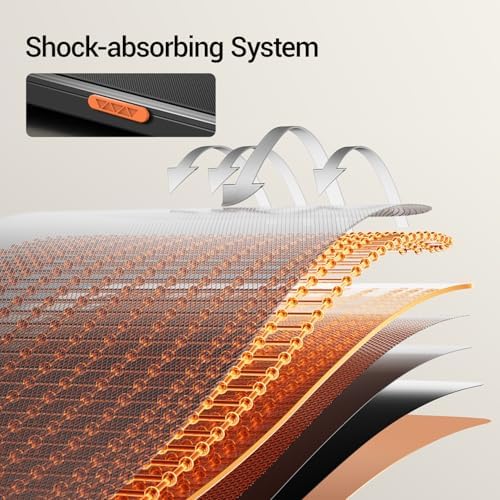 Spacious Running Belt: 38.2“ x 15.2” Running belt is equipped with 6 layers of non-slip surface, cushioning rubber pads and silicone shock absorbers, the running belt will not shift to ensure a smooth and comfortable run, absorbs shock generated during running, reduces impact on joints and muscles, extends the duration of the workout, and improves workout results