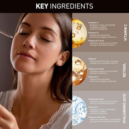 PURE & POTENT SKIN CARE – Our power trio of vitamin C serum, retinol serum and hyaluronic acid serum is a full face serum set for brightening, firming and hydrating your skin – made with natural and organic ingredients you can feel good about.