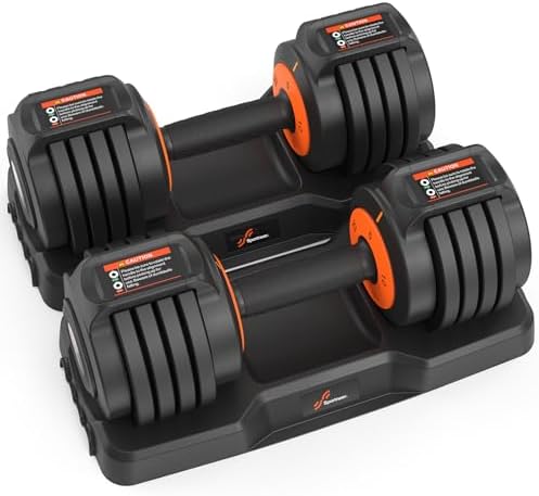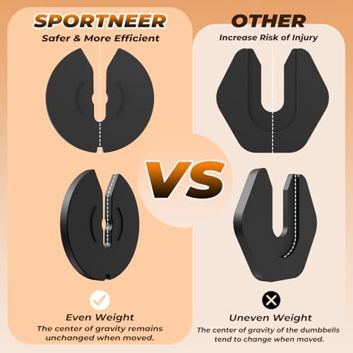 Sweat-Proof & Ergonomic Handle: Sportneer adjustable dumbbell set are treated with premium rubber-coated handles with a non-slip texture provide exceptional grip and comfort, preventing slips and blisters during intense workouts