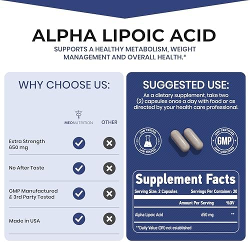 High-Potency Alpha Lipoic Acid: Each serving provides 650mg of premium Alpha Lipoic Acid, designed to complement your daily wellness routine with antioxidant and metabolic support.