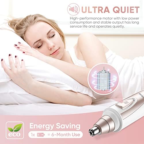 Energy-Saving & Whisper-Quiet Operation: The upgraded motor is more powerful but less power-consuming by 5%. 1pc AA battery (NOT included) can run for more than 6 months for 5mins’ of use at a time. This nose trimmer is suitable for road trips and travel. With operating noise less than 50db, use the nose hair clippers freely.