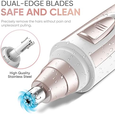 Dual-Edge Spinning Blades: This nose hair trimmer features a dual-edge spinning blades system with a protective cover, inner 360° rotating design, which smoothly and precisely removes the hairs without painful or unpleasant pulling. It is comfortable and easy to use. Let you show your best at work or appointments.