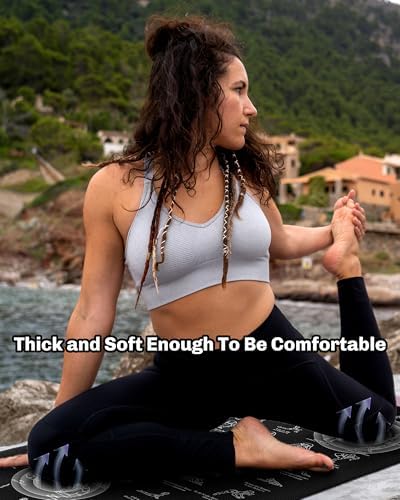The mat’s clear illustrations and easy-to-follow instructions guide beginners through each pose and stretch. Its non-slip yoga mat surface and durable construction make it a top pick for workout mats