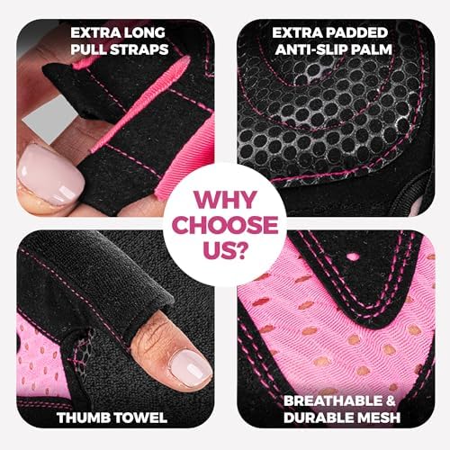 ✅【Convenient Design】- Nothing beats MHIL’s uniquely designed gym gloves, ensuring they are the best in every way! Our special and convenient features include a thumb towel for wiping sweat, pull loops on the fingers for easy removal, silicone structure for the best grip, durable & strong Velcro straps to adjust them how you want, padding to allow lifting and pulling heavier weights, and mesh backing cuts down on sweat & prevents sticking. There are also different sizes and colors to choose from!