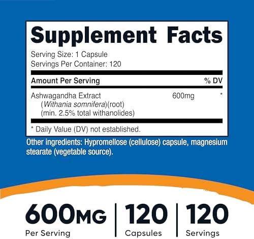Long-lasting supply: With 120 capsules per bottle, Nutricost Ashwagandha Root Extract Capsules offer a generous supply, providing you with 120 servings.