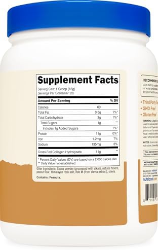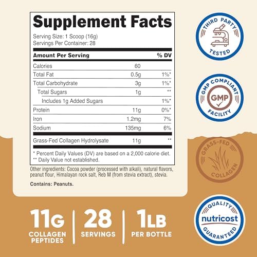 Nutricost Collagen Peptides Powder (Chocolate Peanut Butter Flavored) 1 LB – Grass-Fed Collagen Hydrolysate, Gluten-Free