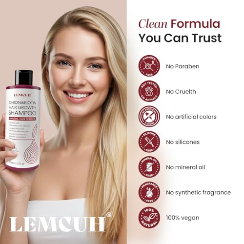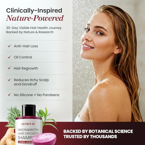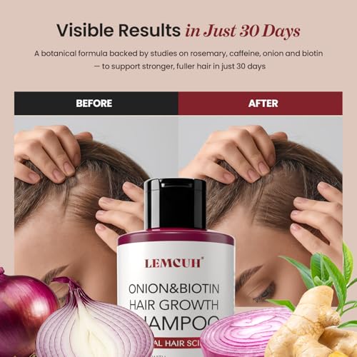 Powerful Natural Growth Formula: Formulated with onion extract, biotin, rosemary, and tea tree oil, this shampoo supports visibly stronger, fuller-looking hair. Ideal for thinning, weak, or damaged hair.