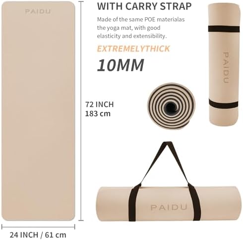 HIGH QUALITY MATERIALS:Paidu yoga mat made from premium quality POE material, this material is the latest technological improvement to the traditional yoga mats. No latex, no PVC, or any heavy metal.This exercise mat for home workout is flexible, tear-resistant,and designed for long-lasting.durability.