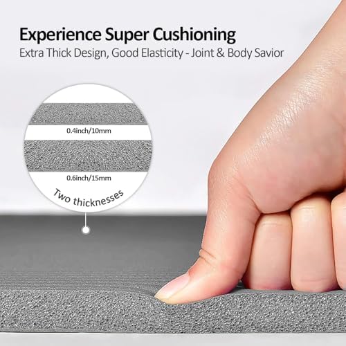 EXTRA THICK YOGA MAT: These 0.4 inches (10mm) exercise mats gives you good cushioning without sacrificing stability. Say goodbye to sore knees and stiff joints. Designed with a textured, non-slip surface to help reduce sliding on hard or tile floors.